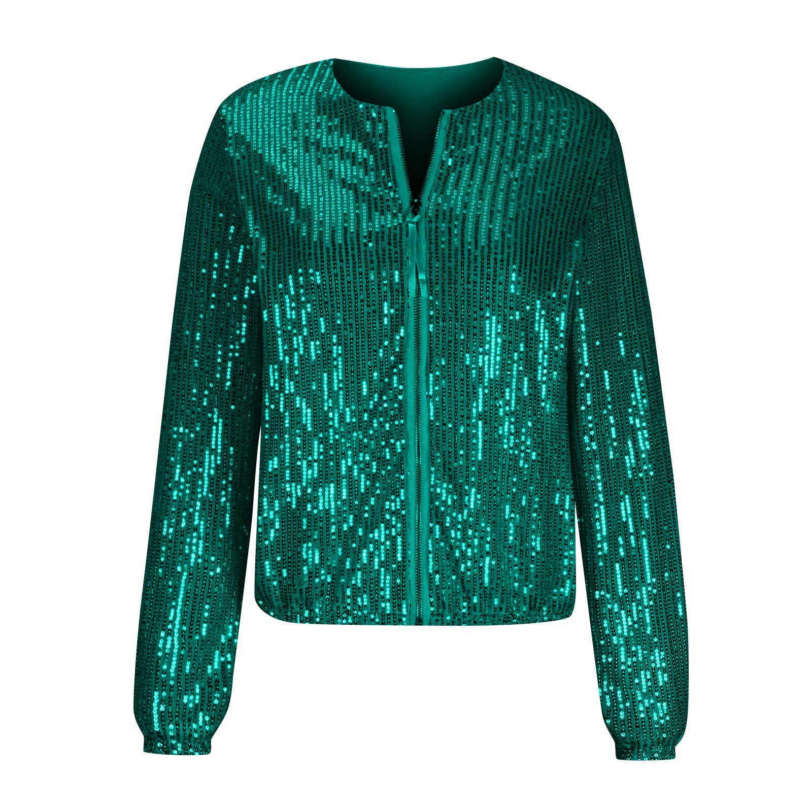Verleihen Sie Ihrem Look mit unserer Damen glamourösen Paillettenjacke einen Hauch von Eleganz und Funkeln. Diese stilvolle Jacke ist ideal für besondere Anlässe und macht Sie garantiert zum Mittelpunkt jeder Feier.
