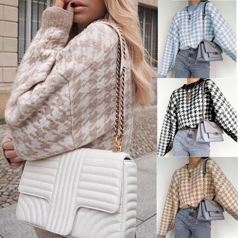 Damen Grobstrickpullover mit modernem Hahnentrittmuster und lässigem Schnitt Stalluxe