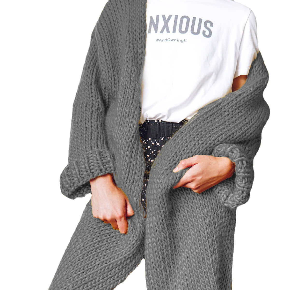 Damen Großer Strickmantel mit tiefen Taschen und voluminösen Ärmeln Stalluxe