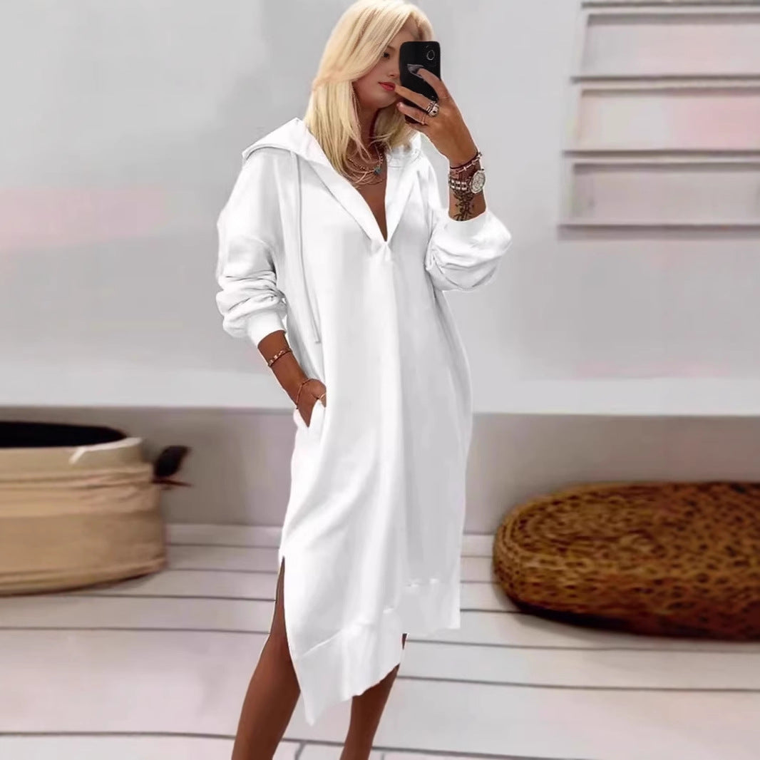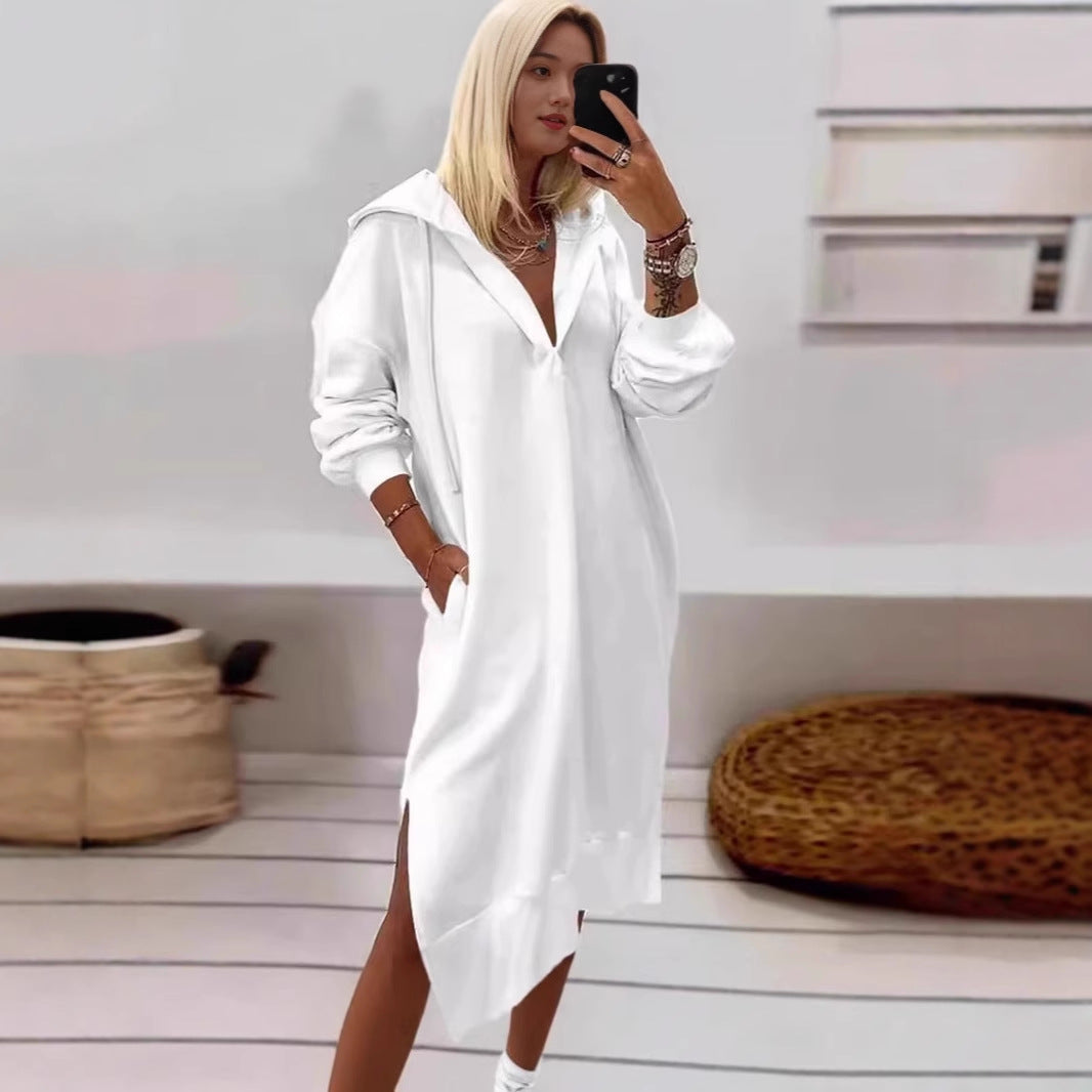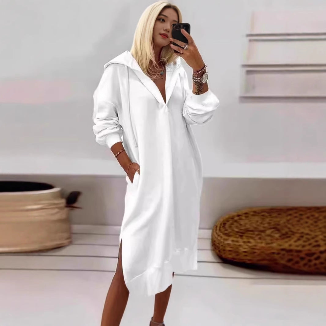 Damen Kapuzenkleid mit seitlichen Schlitzen und bequemen Taschen Stalluxe