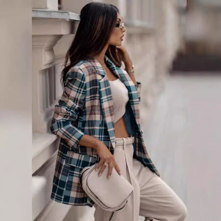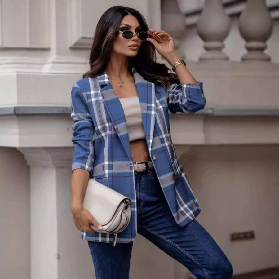 Damen kariertes Blazerjacke mit elegantem Schnitt und modernem Design Stalluxe