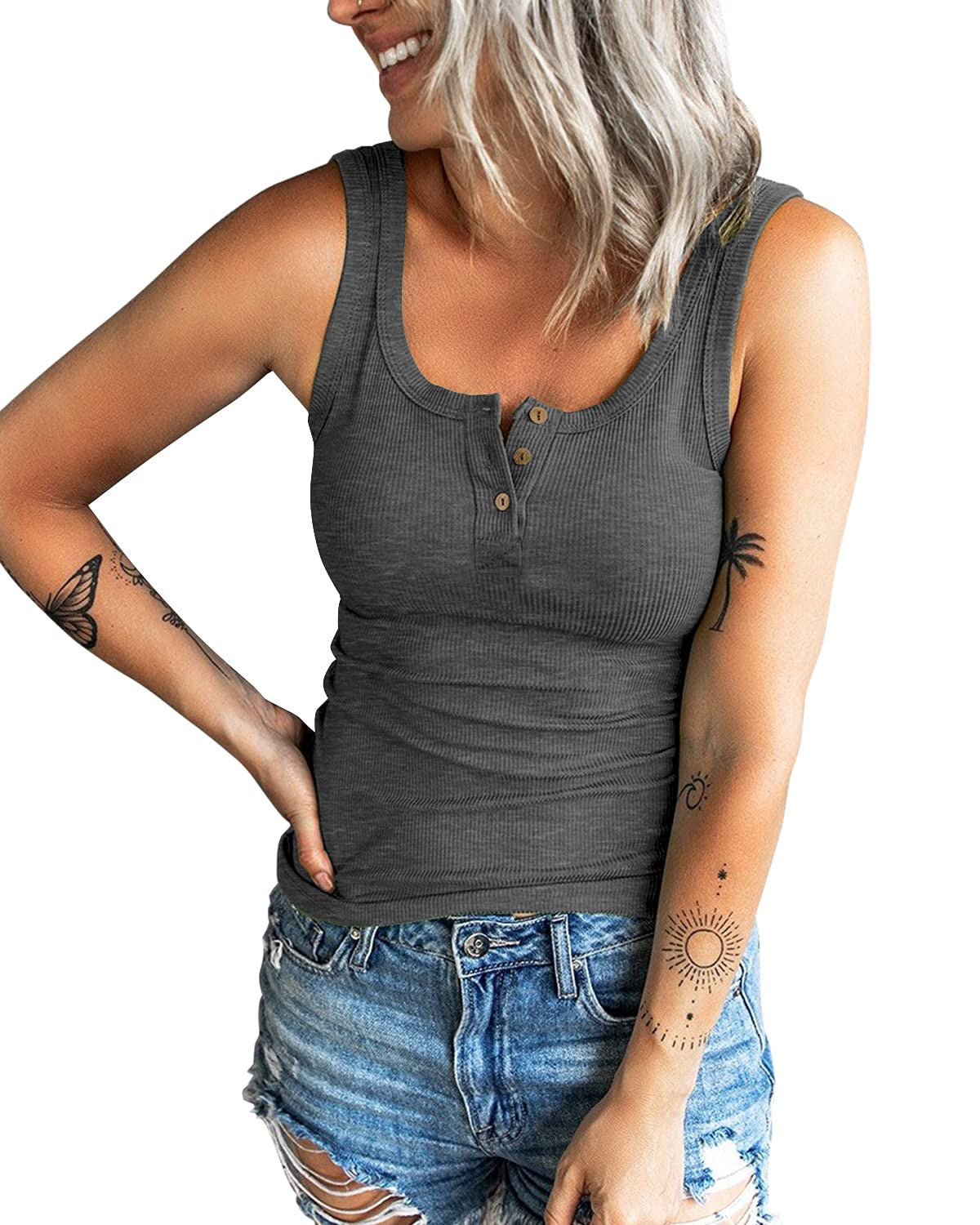 • Modisches Design: Das Trägershirt verfügt über dekorative Knopfdetails und eine feminine Schnittführung, die jeder Figur schmeichelt.