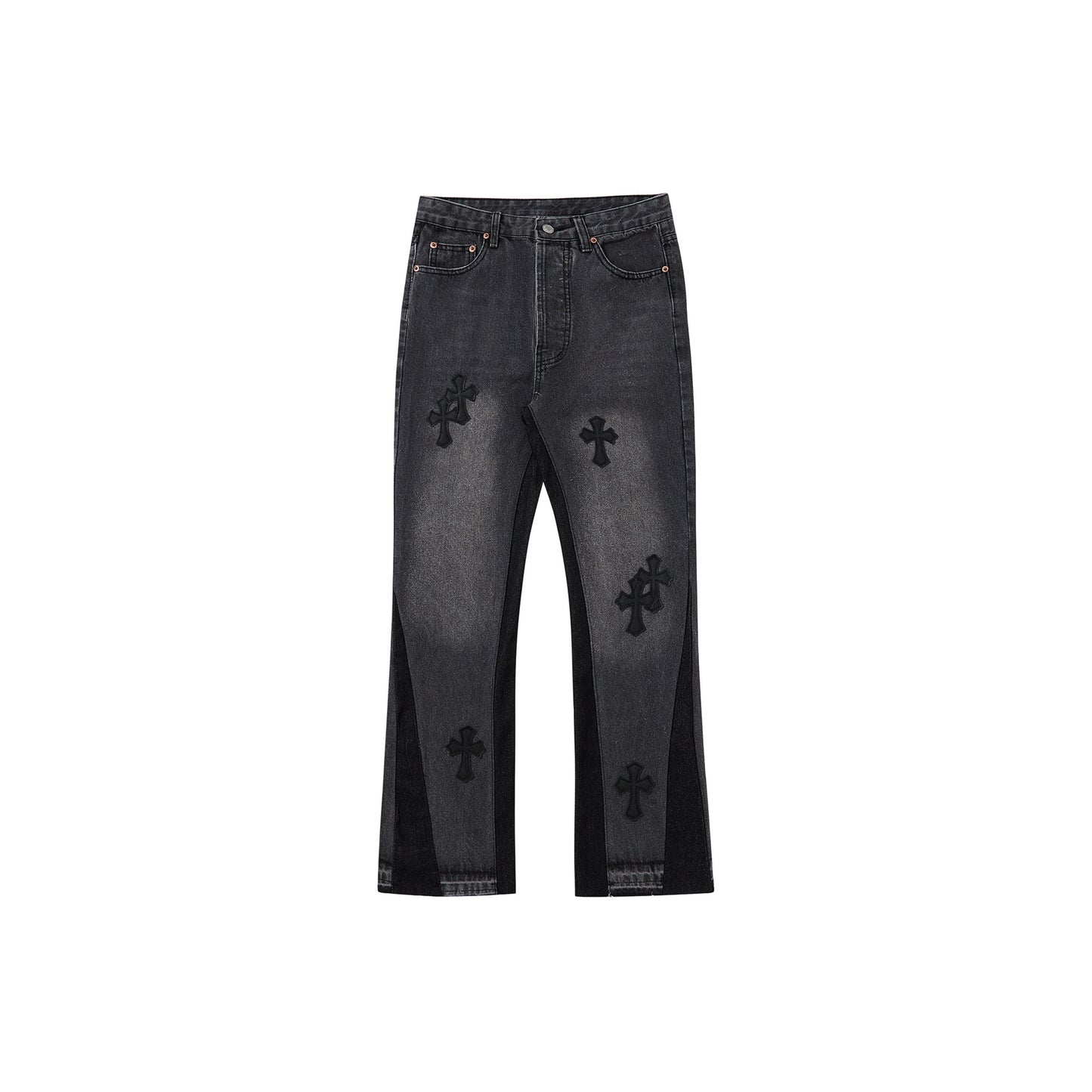 Damen kreative Jeans mit einzigartigen Farbblöcken und Detailapplikationen Stalluxe
