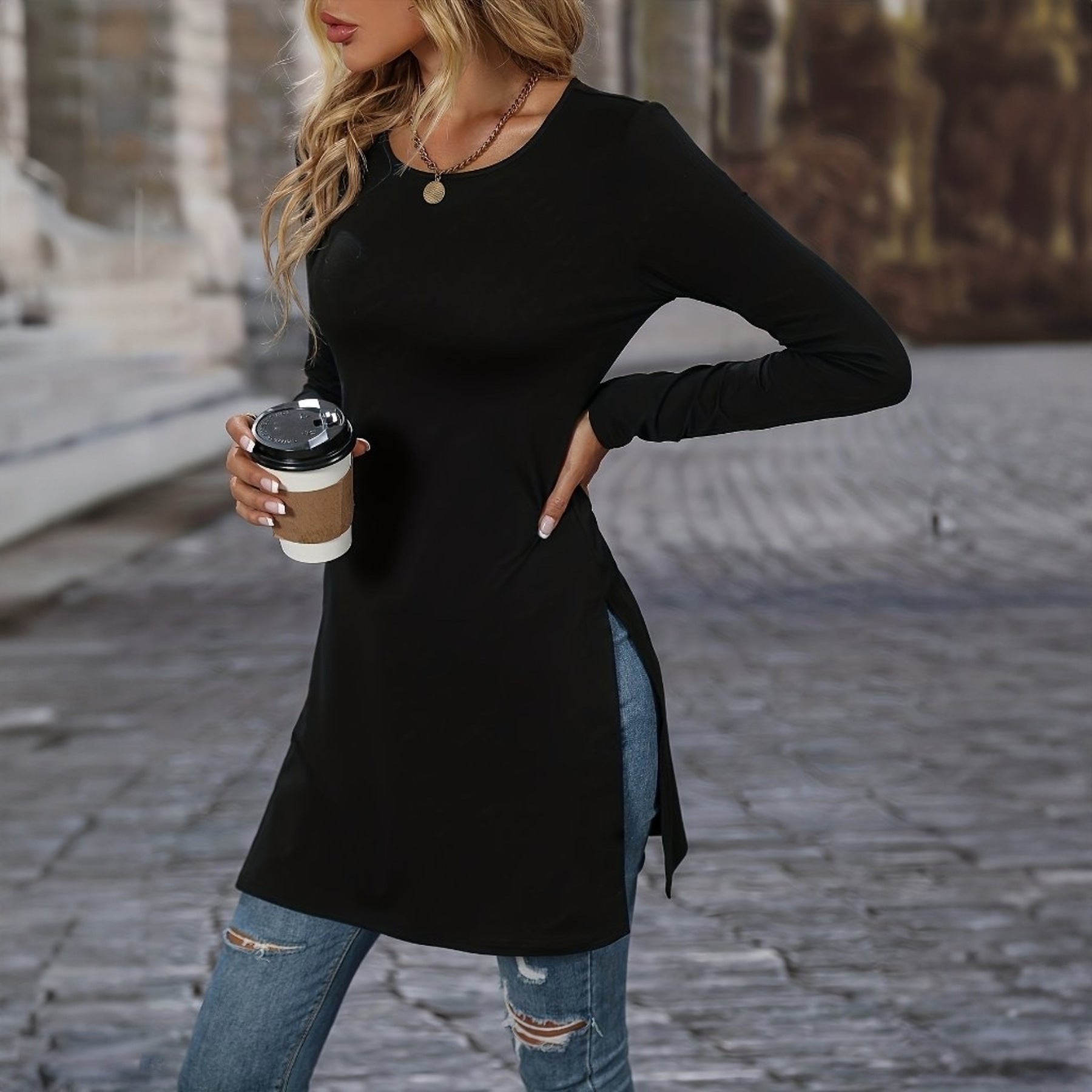 • Design: Klassischer Rundhalsausschnitt und längere Ärmel für einen zeitlosen Look.