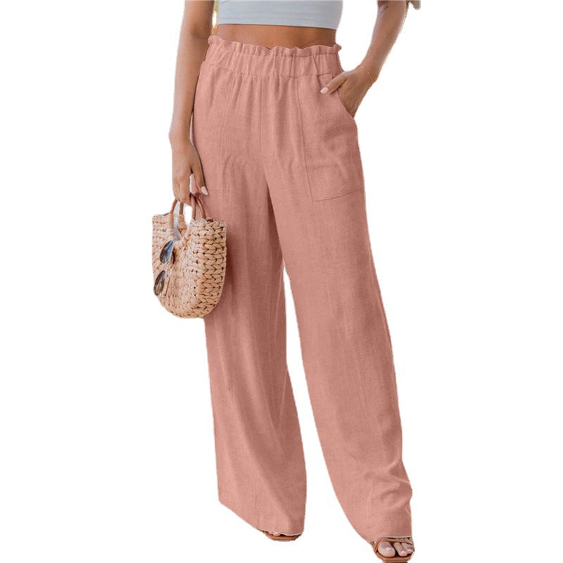 Damen lässige Leinen-Hosenset mit elastischem Bund und praktischen Seitentaschen Stalluxe