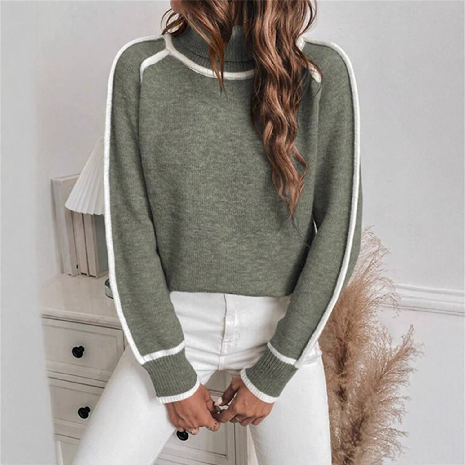 Damen lässiger Rollkragenpullover mit kontrastierenden Details Stalluxe