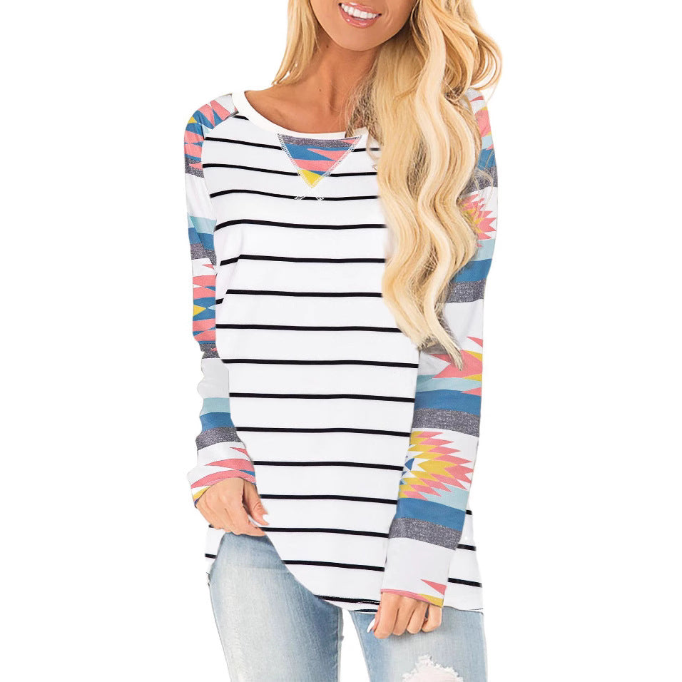 Damen Lässiges Langarmshirt mit farbenfrohen Mustern und Streifenmuster Stalluxe