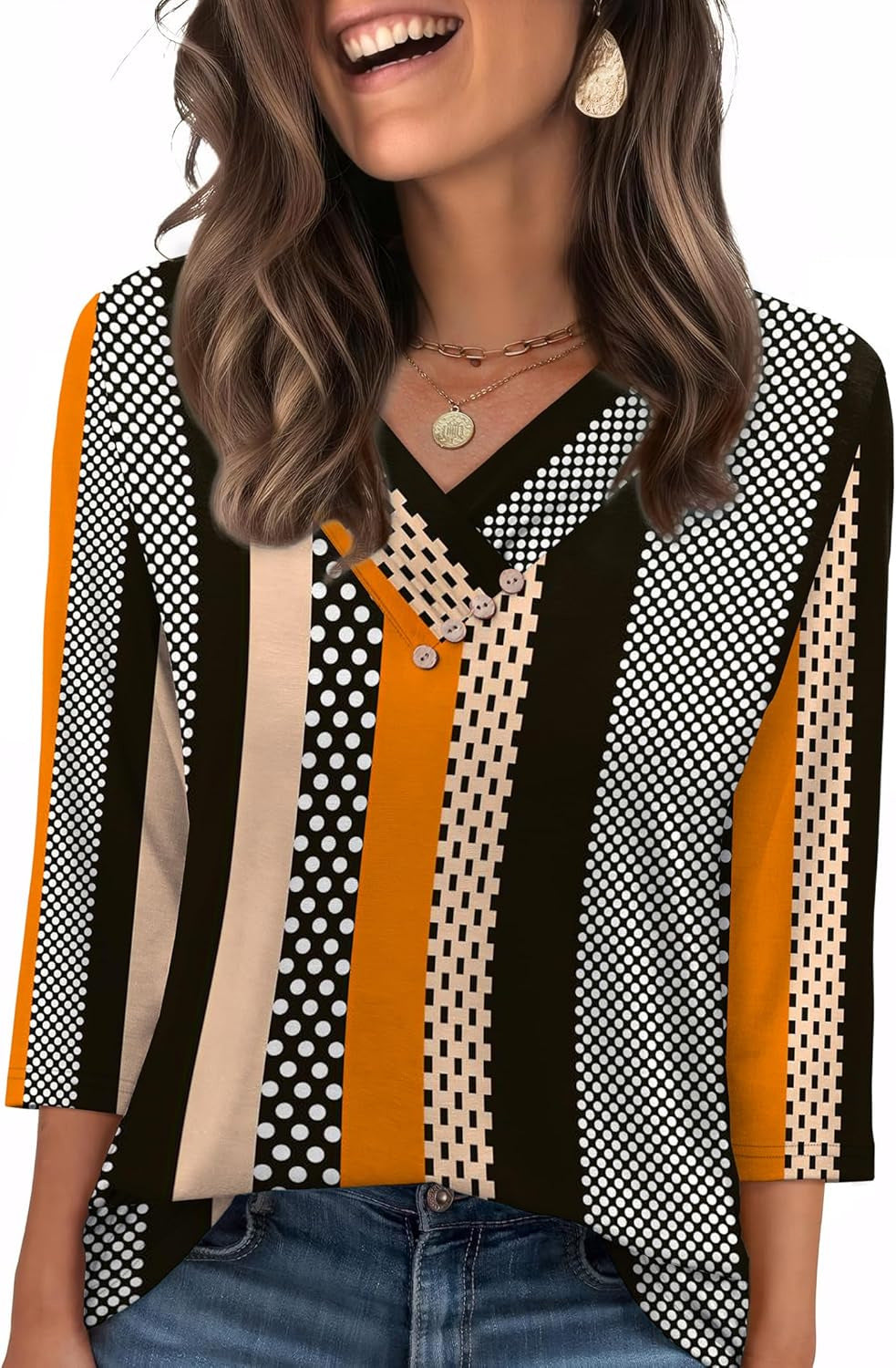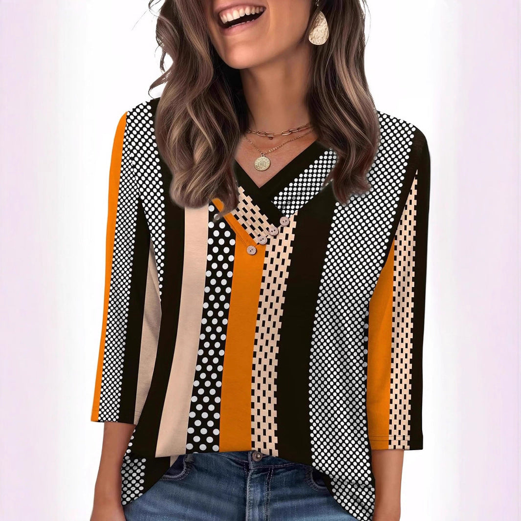 Entdecken Sie unser lässiges Damenoberteil, das mit seinen dekorativen Knöpfen und dem v-förmigen Ausschnitt begeistert. Perfekt für jeden Anlass, bietet es sowohl Stil als auch Komfort.