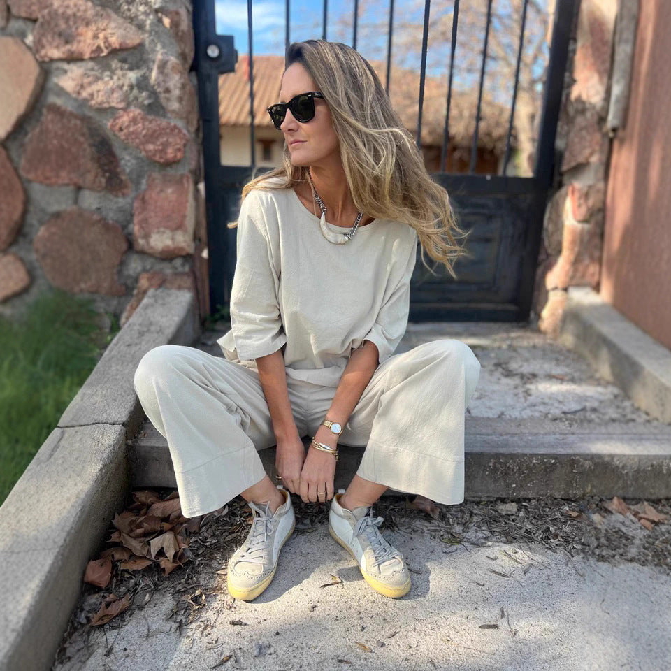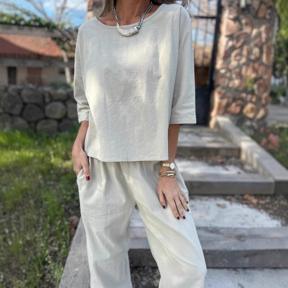 Damen Lässiges Oberteil mit drei viertel Ärmeln und lockerem Schnitt Stalluxe