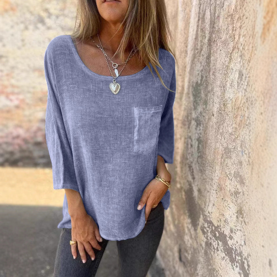 • Design: Das oberteil verfügt über einen runden Ausschnitt und lässige drei Viertelärmel, ideal für wärmeres Wetter.