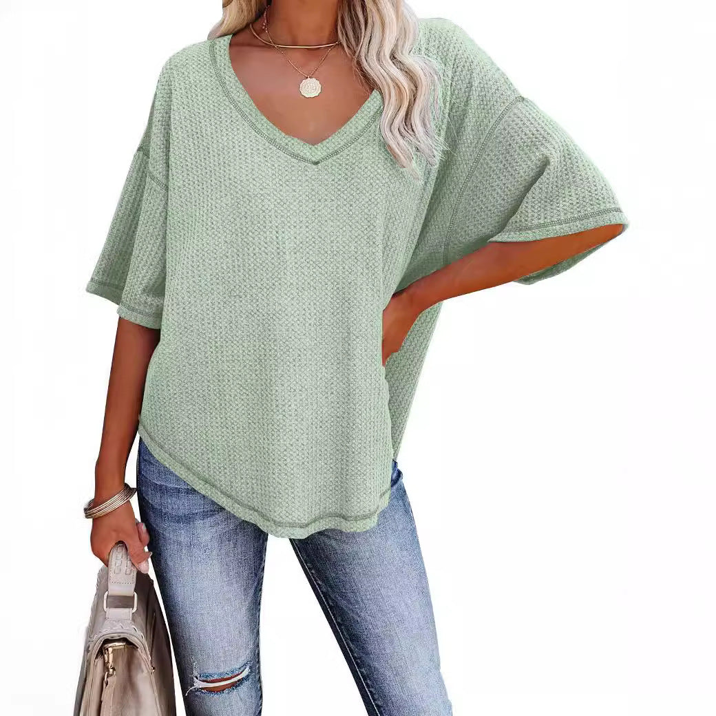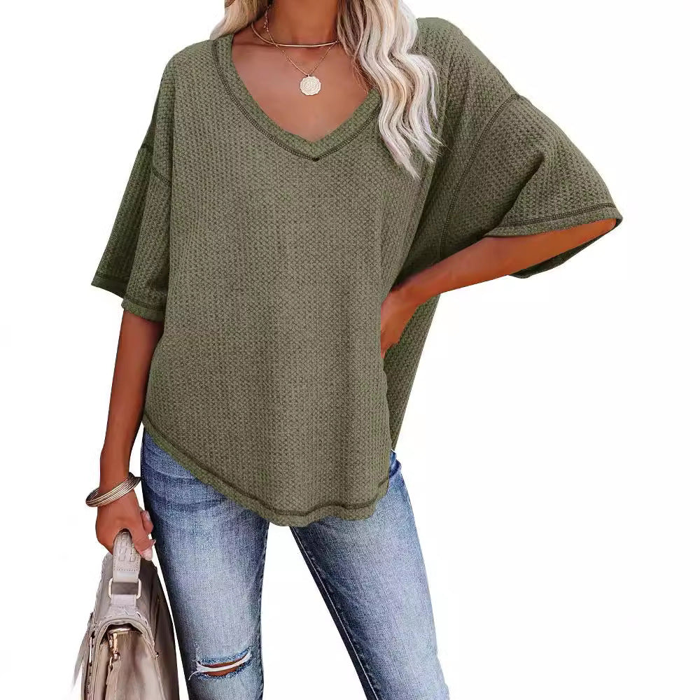 Damen lässiges V-Ausschnitt Oberteil aus Waffelstrick Stalluxe