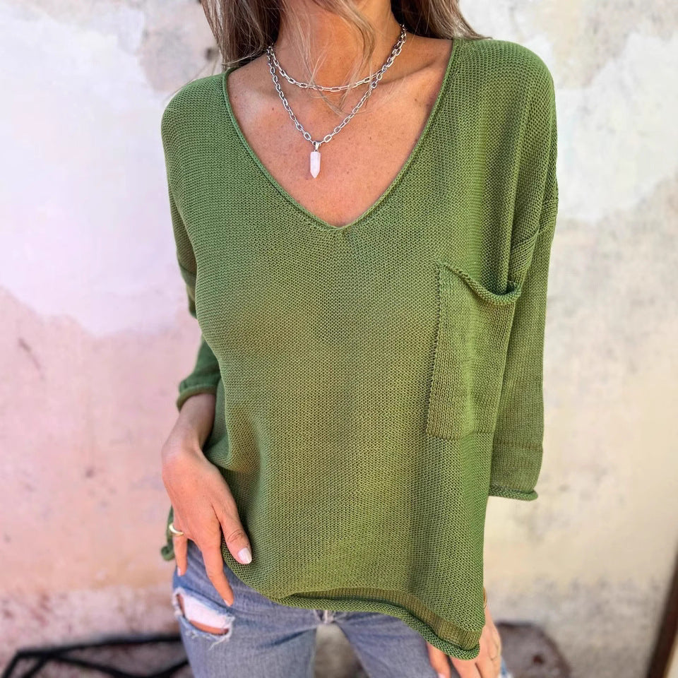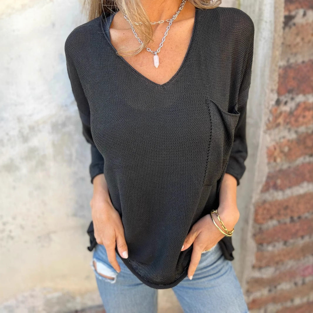 Damen Leichtes V-Ausschnitt Strickoberteil mit Brusttasche Stalluxe