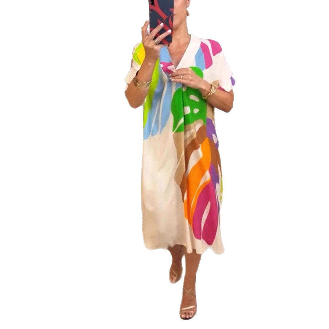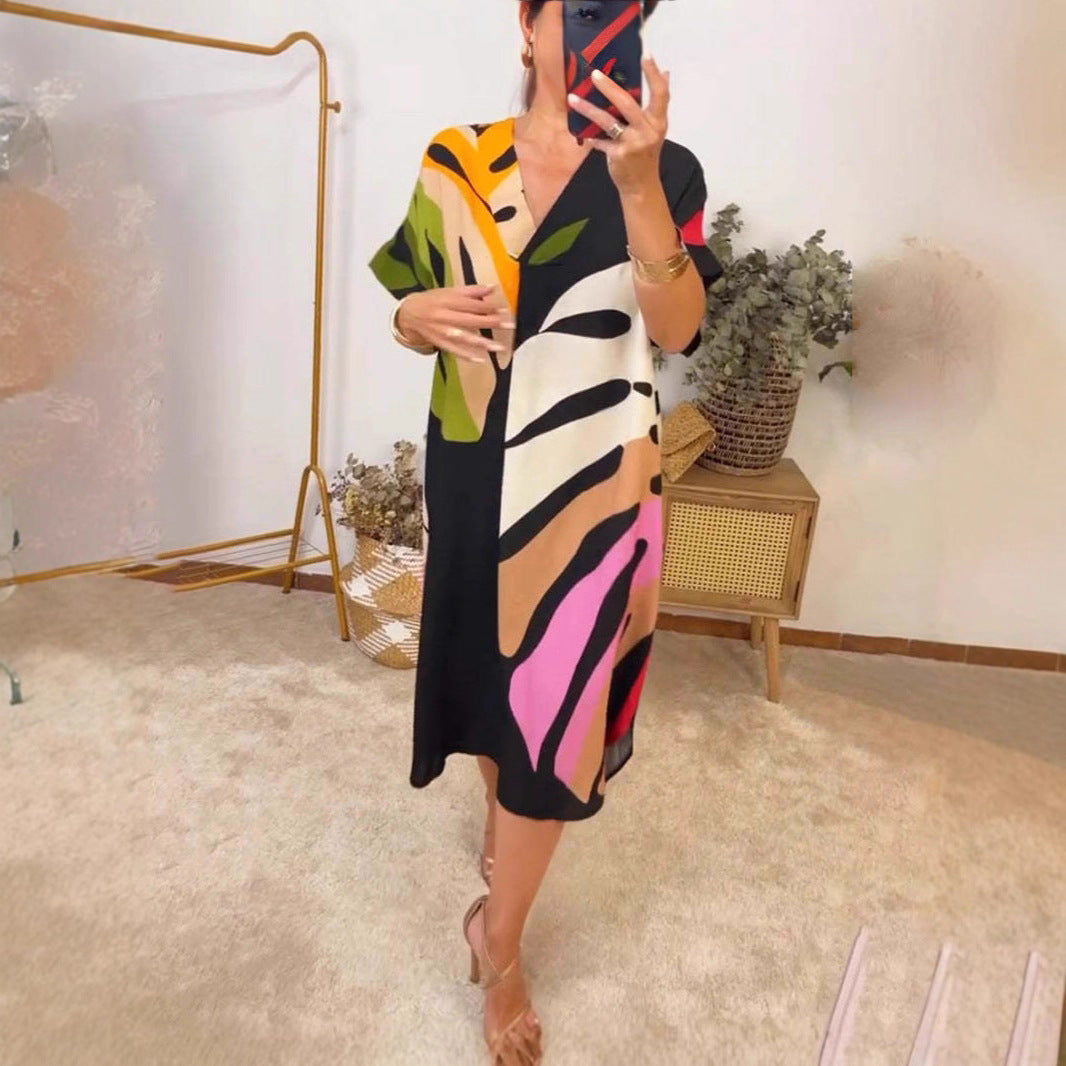 Dieses stilvolle Damenkleid kombiniert Komfort und Eleganz auf perfekte Weise. Mit seinem modernen Design aus kräftigen Farben und grafischen Mustern ist es ein absolutes Must-Have für Ihre Sommergarderobe.