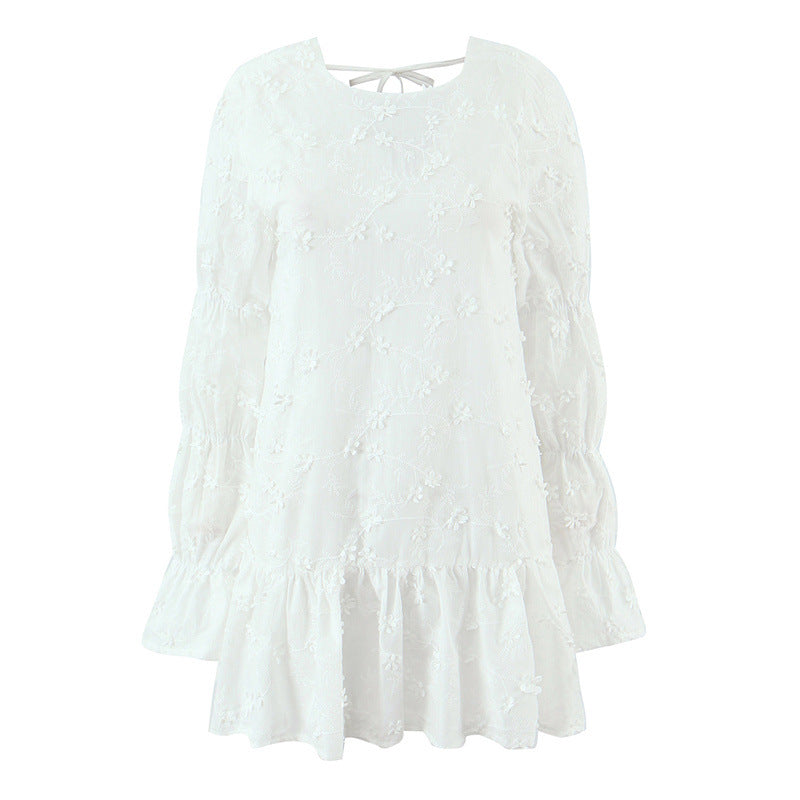 Damen luftiges Blusenkleid mit floralen Stickereien und Volantärmel Stalluxe
