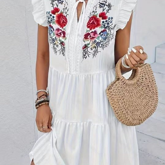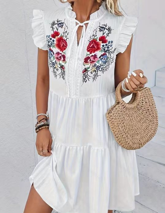 • Romantische Stickerei: Aufwändige florale Motive an der Front verleihen dem Kleid einen femininen Touch.