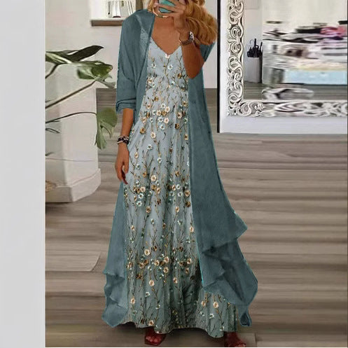 Damen Maxi-Kleid mit zarten Blüten und elegantem Überwurf Stalluxe