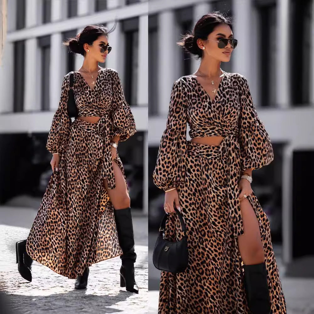Entdecken Sie das atemberaubende Damen Maxikleid im Leopardenmuster, das nicht nur durch seinen auffälligen Print besticht, sondern auch durch sein elegantes Wickeldesign und die voluminösen Ärmel. Dieses Kleid ist die perfekte Wahl für fashionbewusste Frauen, die in jedem Moment großartig aussehen möchten.