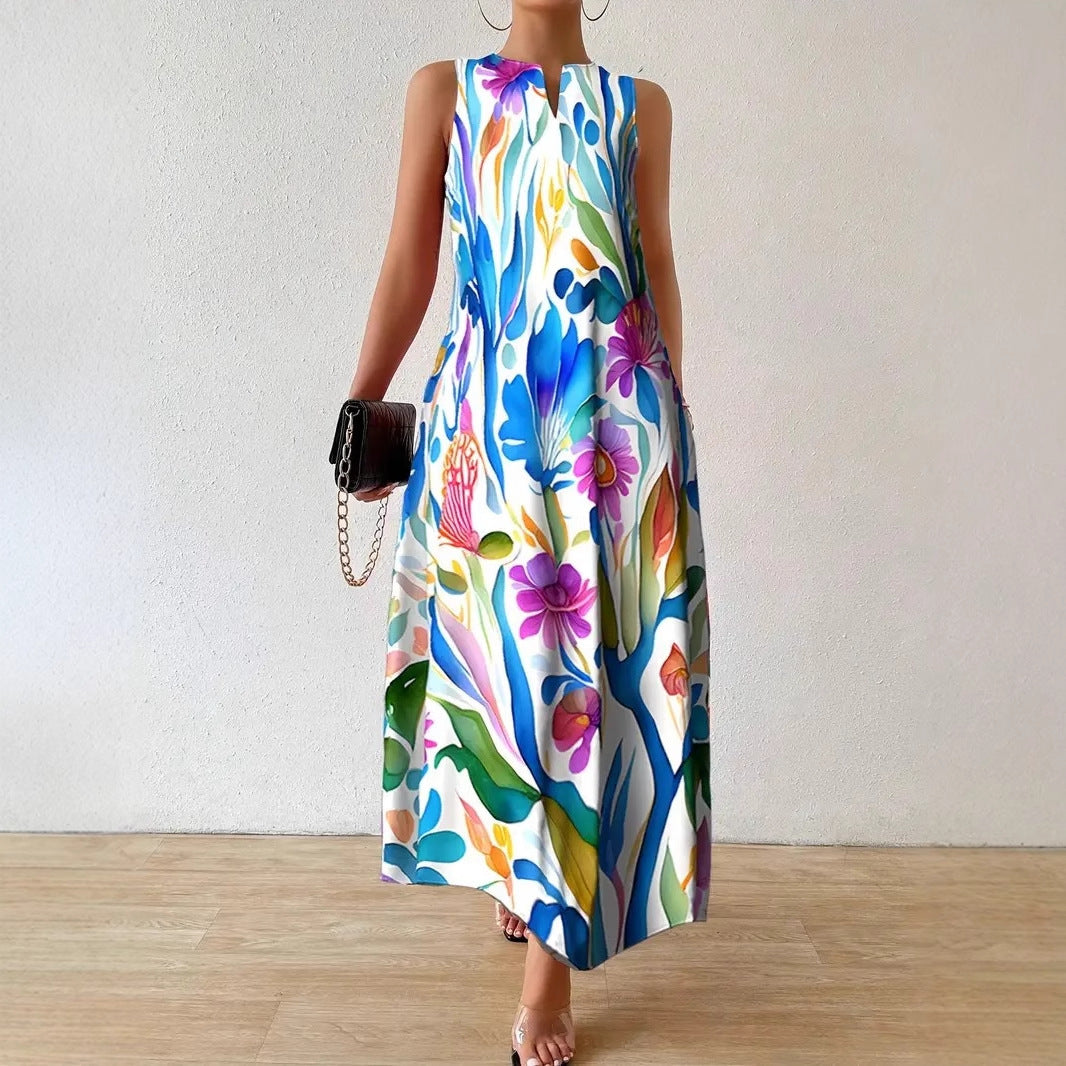 Damen Maxikleid mit buntem Blumendesign Stalluxe
