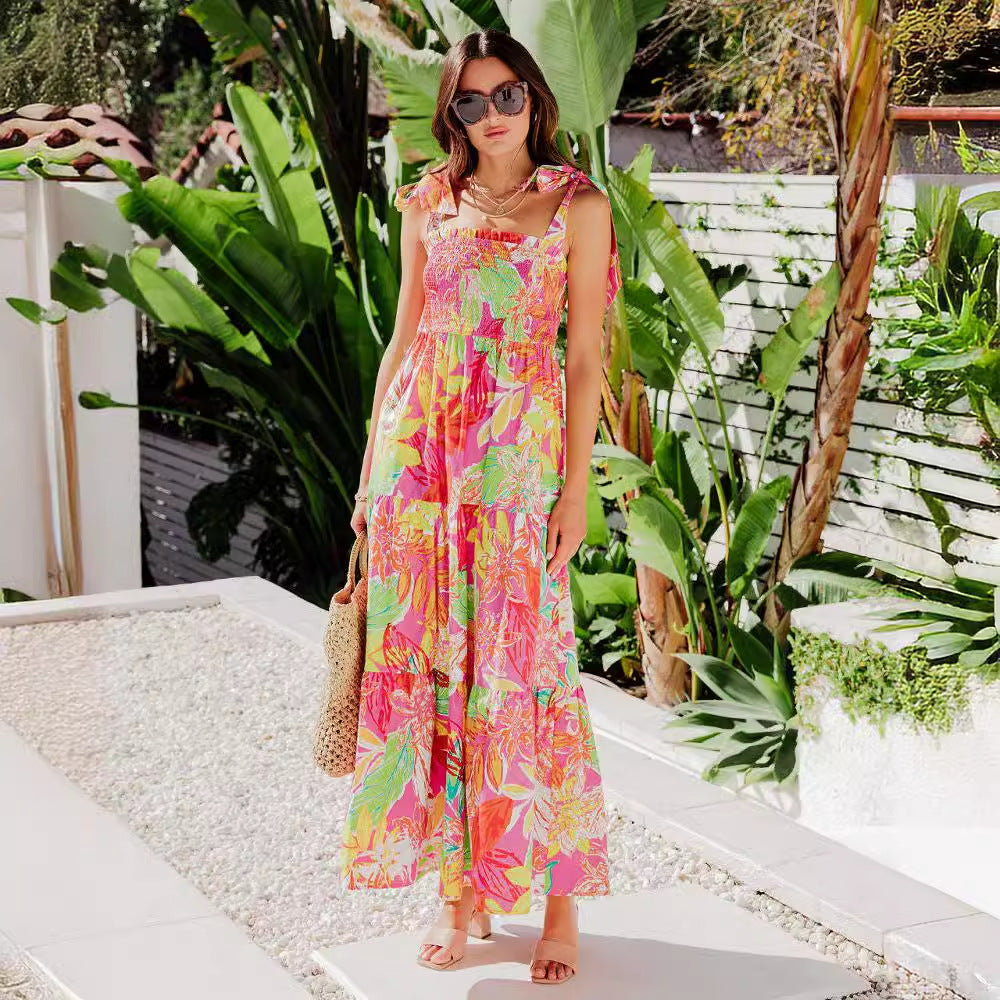 Damen Maxikleid mit fröhlichem Blumenmuster und verstellbaren Trägern Stalluxe