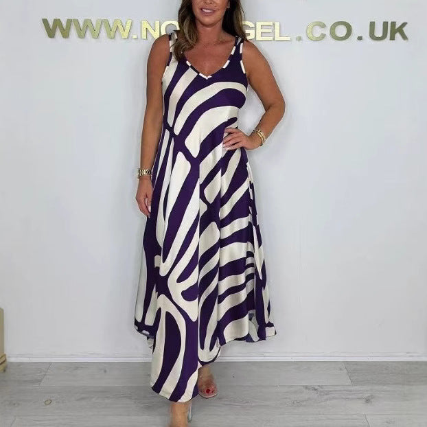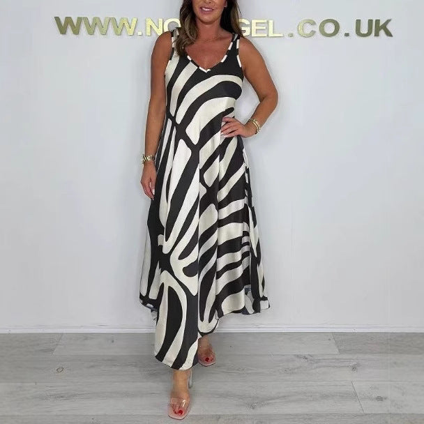 Damen Maxikleid mit modernem, abstrahierter Musterung und V-Ausschnitt Stalluxe