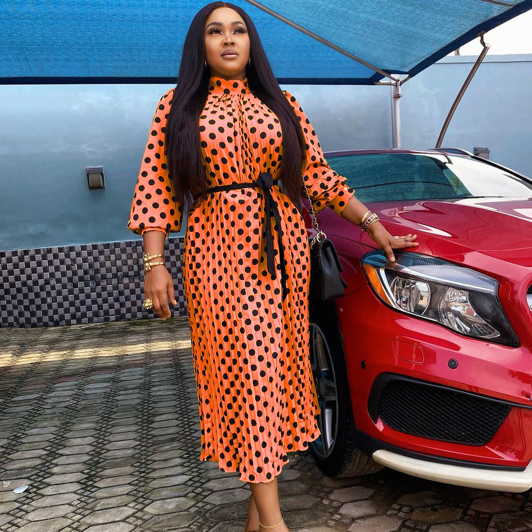 Entdecken Sie unser anspruchsvolles Damen Maxikleid, das Eleganz und Komfort perfekt vereint. Dieses Kleid überzeugt durch ein modernes Punkte-Design, das zeitlose Schönheit verkörpert.