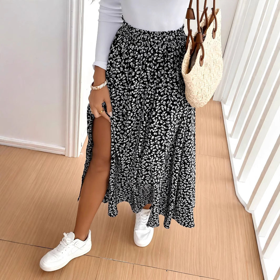 Entdecken Sie unseren außergewöhnlichen Damen Maxirock mit floralem Muster und seitlichem Schlitz, der sowohl Stil als auch Komfort vereint. Dieser Rock wird aus hochwertigem, atmungsaktivem Material gefertigt, das Ihnen ein angenehmes Tragegefühl garantiert.