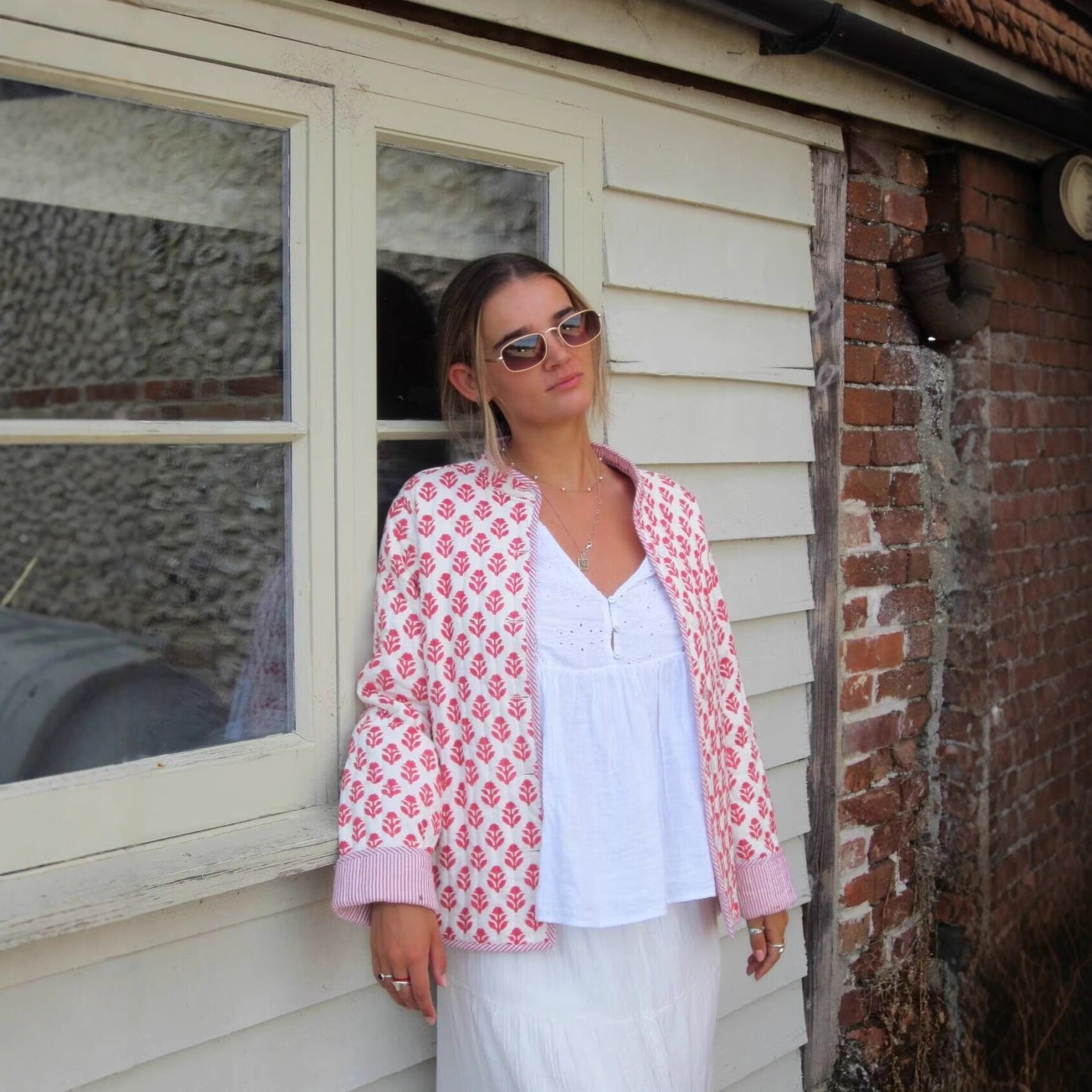 • Design: Das florale Muster verleiht der Jacke einen frischen, modernen Look, während die Knopfdetails eine elegante Note hinzufügen.