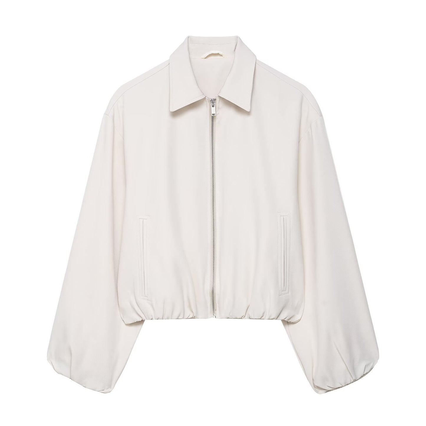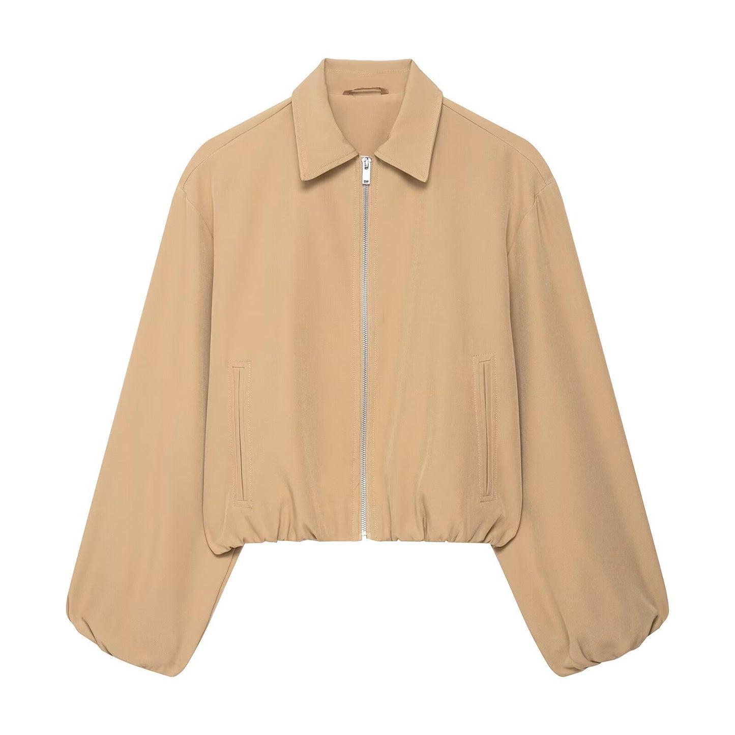 • Schnitt: Die Jacke hat einen stilvollen, verkürzten Schnitt mit einem elastischen Bund, der die Taille betont und für eine feminine Silhouette sorgt.