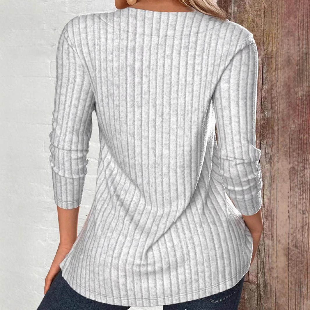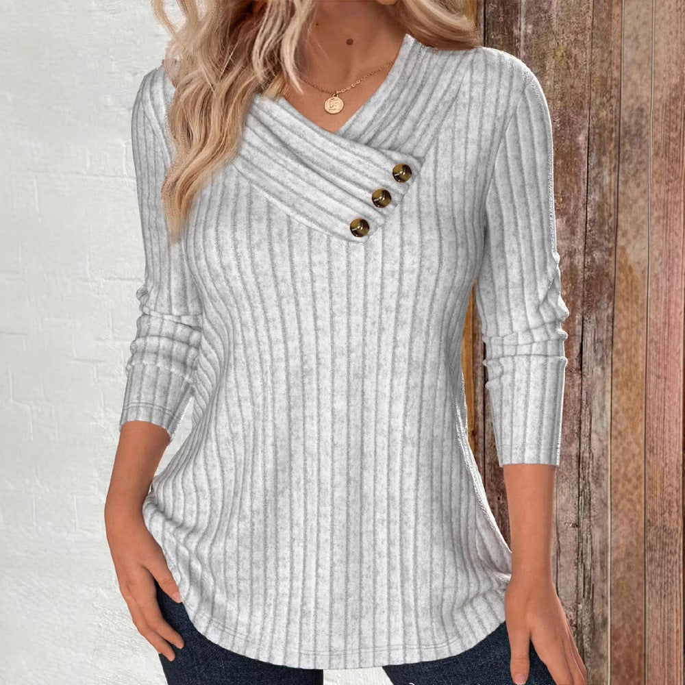 Damen modisches Oberteil mit schrägem Kragen und dekorativen Knöpfen Stalluxe