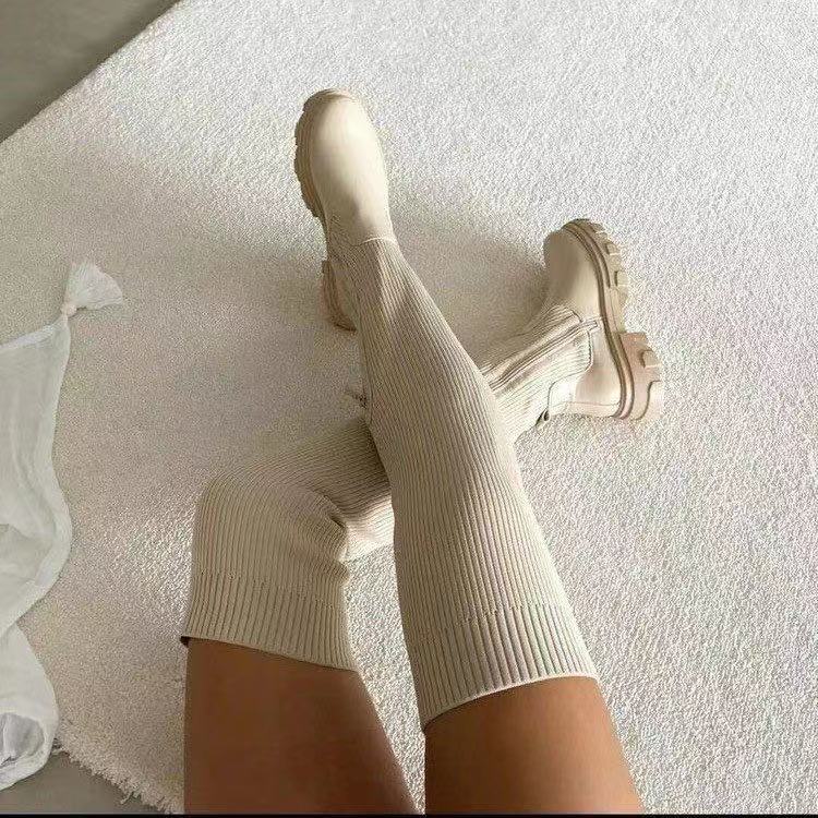 Damen Overknee-Stiefel mit strukturiertem Strick und robuster Sohle Stalluxe