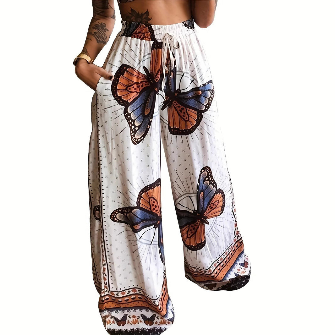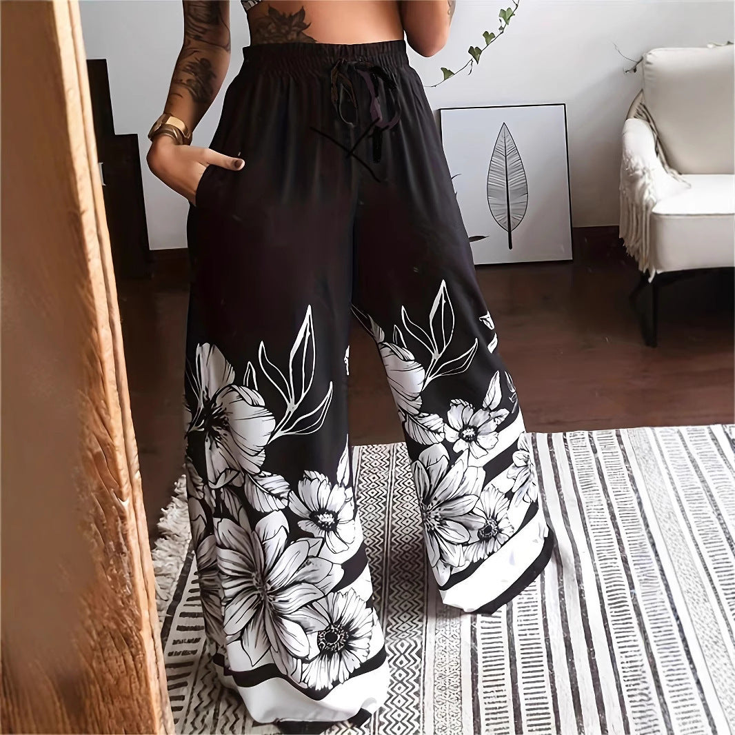 Damen Plissee-Hose mit floralem Muster und elastischem Bund Stalluxe