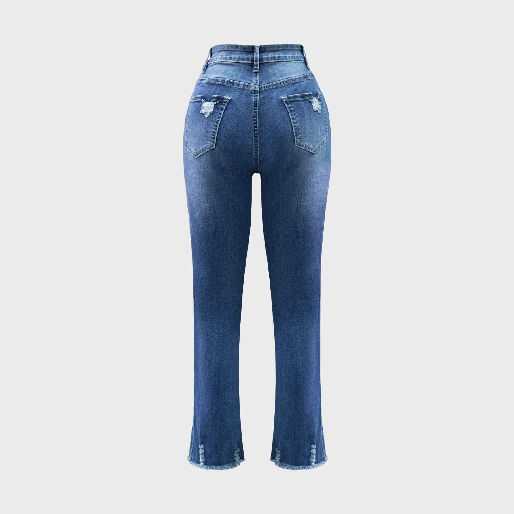Damen Ripped Denim-Hose mit fransigen Saumdetails und hohem Bund Stalluxe