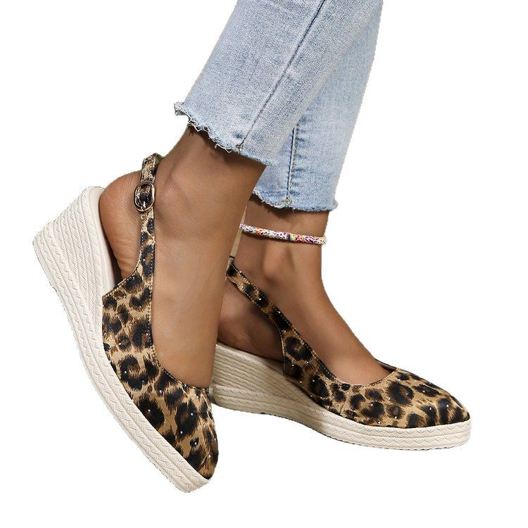 Damen Sling-Pantoletten mit Leomuster und komfortablem Keilabsatz Stalluxe