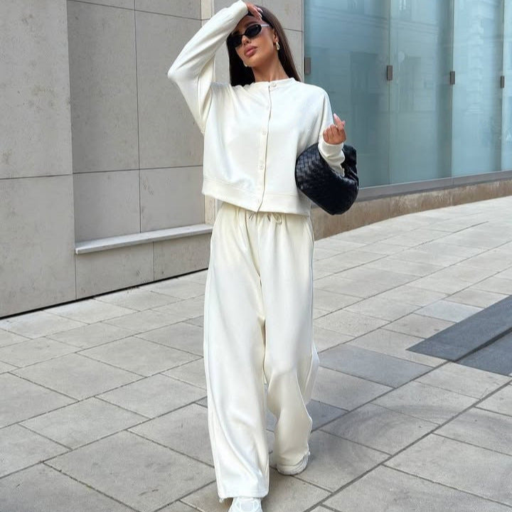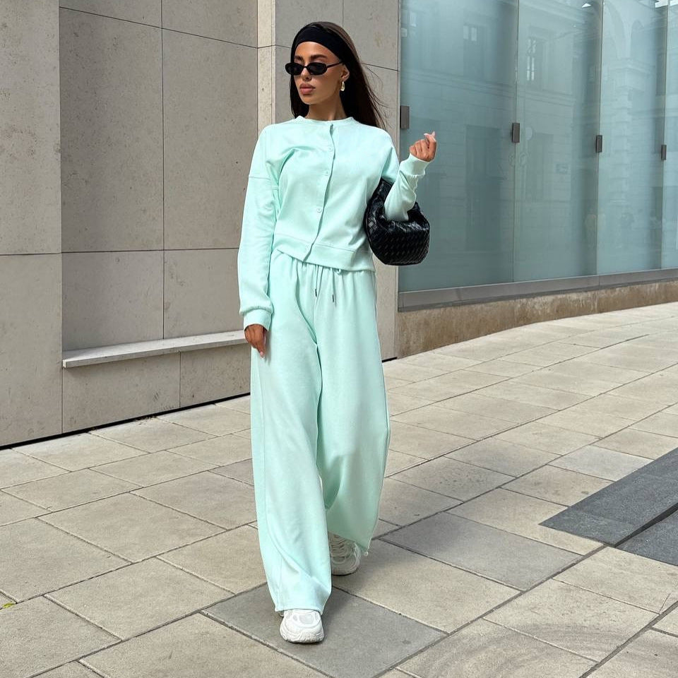 Entdecken Sie das perfekte Gleichgewicht zwischen Stil und Komfort mit unserem Damen sportlichen Freizeit-Set. Dieses maßgeschneiderte Ensemble besteht aus einem lässigen Oberteil und einer bequemen Hose, die Ihnen die Freiheit geben, sich jederzeit zu bewegen.