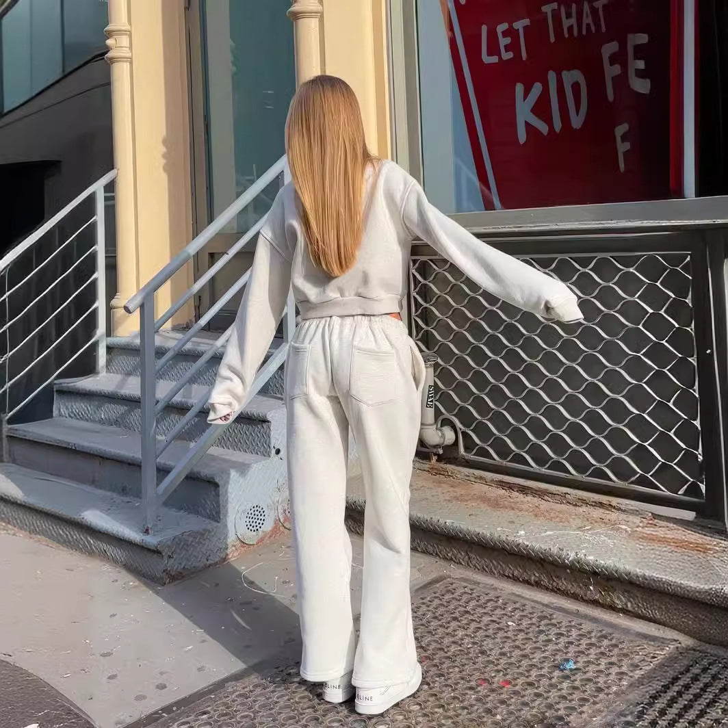 Das Set umfasst eine bequeme Hose mit elastischem Bund, die sowohl stilvoll als auch komfortabel ist. Das weiche, atmungsaktive Material sorgt für hohen Tragekomfort, während die legere Passform ideal für Freizeit- oder Sportaktivitäten ist. Perfekt für entspannte Tage, beim Sport oder einfach zum Chillen zu Hause.