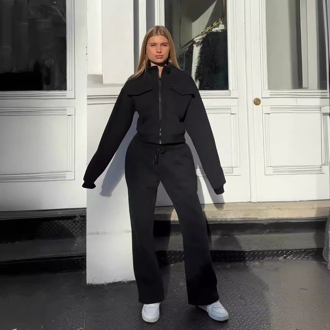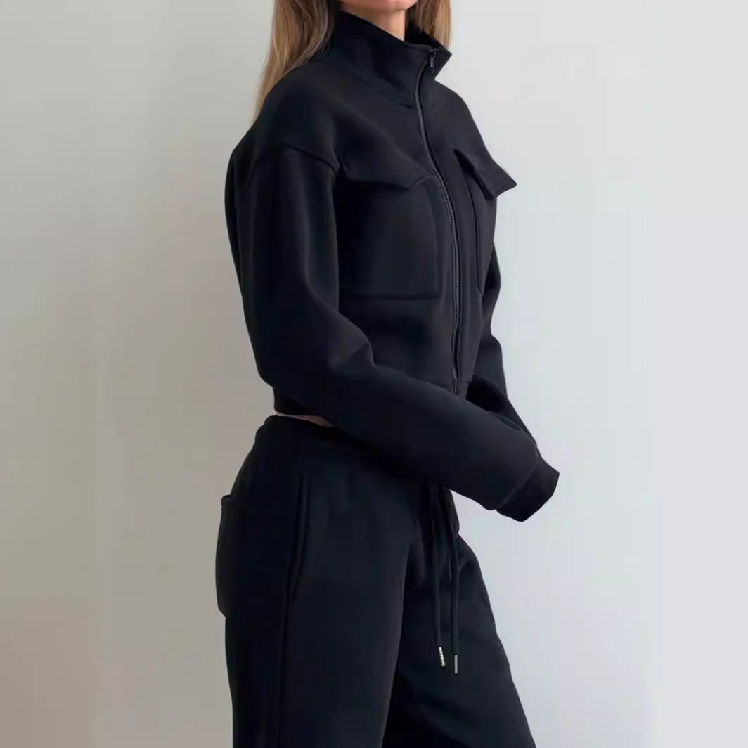 Damen sportliches Zweiteiler Set mit hohem Kragen und praktischen Taschen Stalluxe