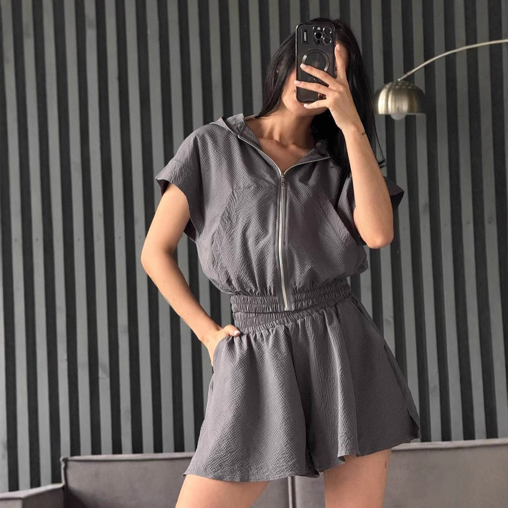 • Modisches Design: Der moderne Schnitt mit Kapuze und kurzen Ärmeln verleiht dem Outfit einen lässigen Look und eignet sich hervorragend für verschiedene Anlässe.