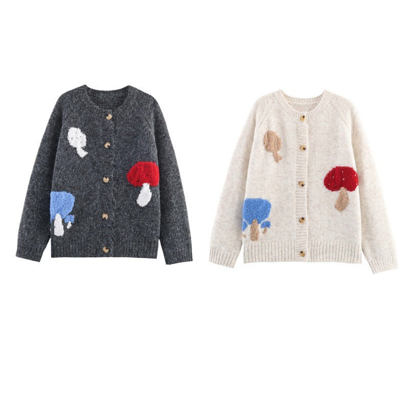 Damen Strickjacke mit buntem Pilzdesign Stalluxe