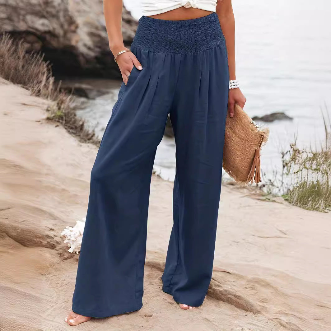 Damen weite Sommerhose mit elastischem Bund und elegantem Faltenwurf Stalluxe