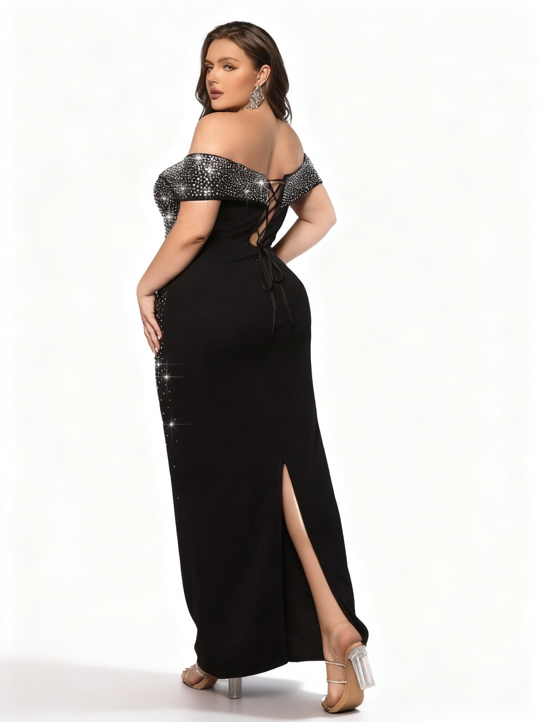 Stalluxe | Schwarzes Schulterfreies Etuikleid mit Strass für den Abend