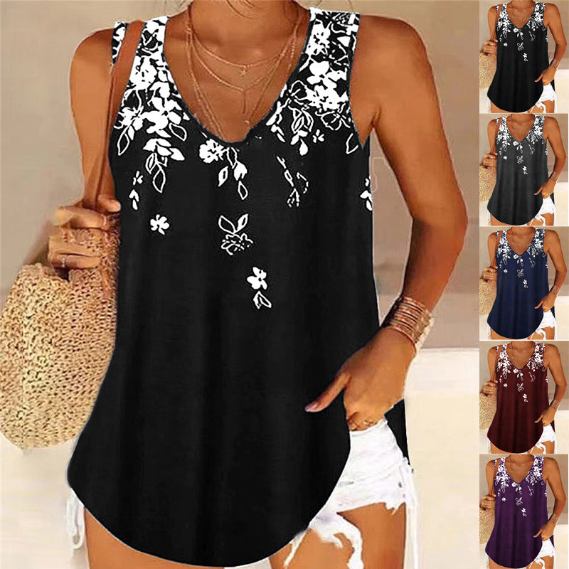Damen ärmelloses Blusenshirt mit floralem Muster und V-Ausschnitt Stalluxe