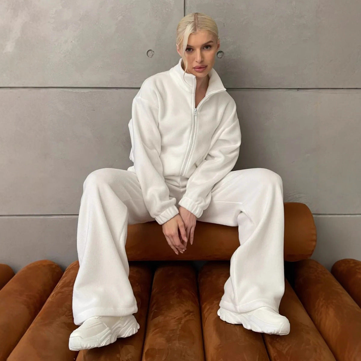 Damen bequemer Fleece-Jogginganzug mit hochschließendem Reißverschluss und weitem Schnitt Stalluxe