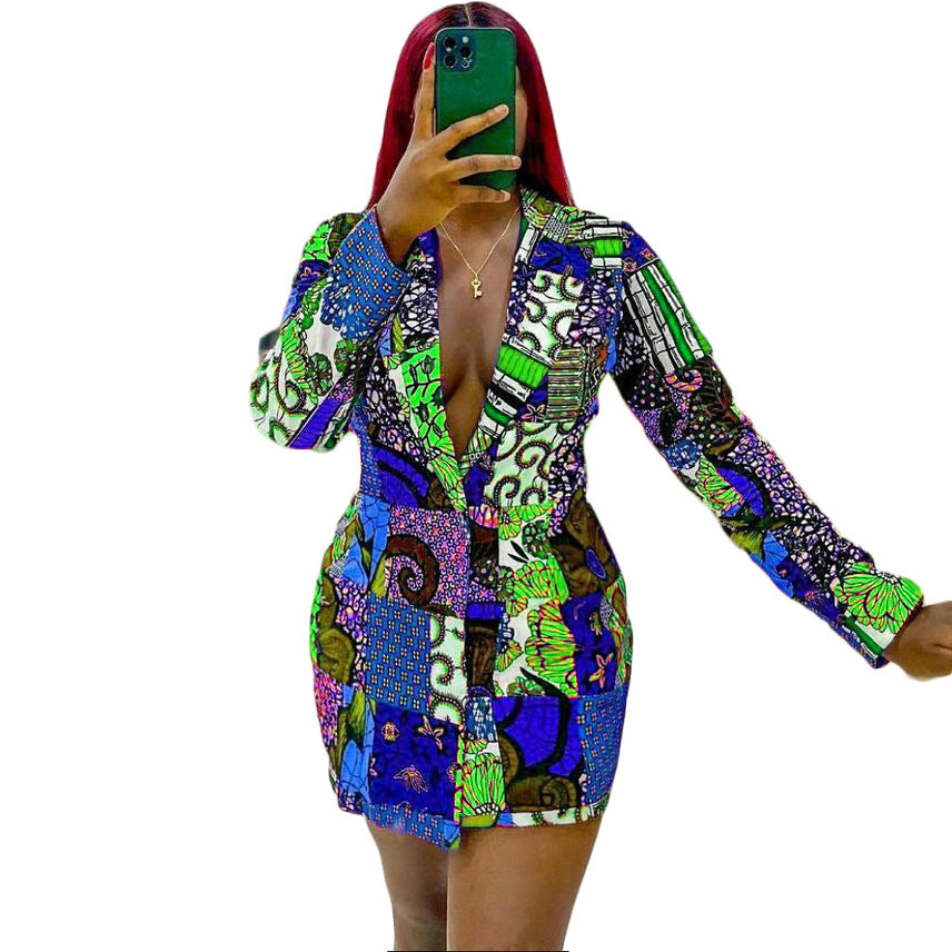 Damen Blazer-Kleid mit buntem Patchwork-Design und elegantem Revers Stalluxe