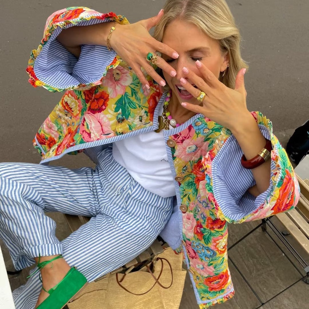 Damen Blumendesign Steppjacke Stalluxe
