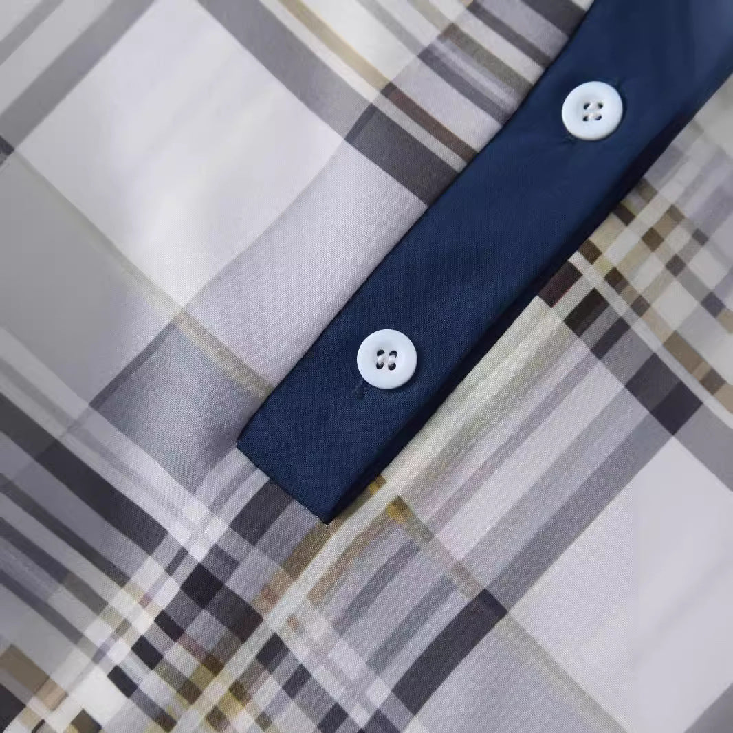 • Design: Kombiniert Karomuster mit unifarbenen Ärmeln für einen modernen Look.