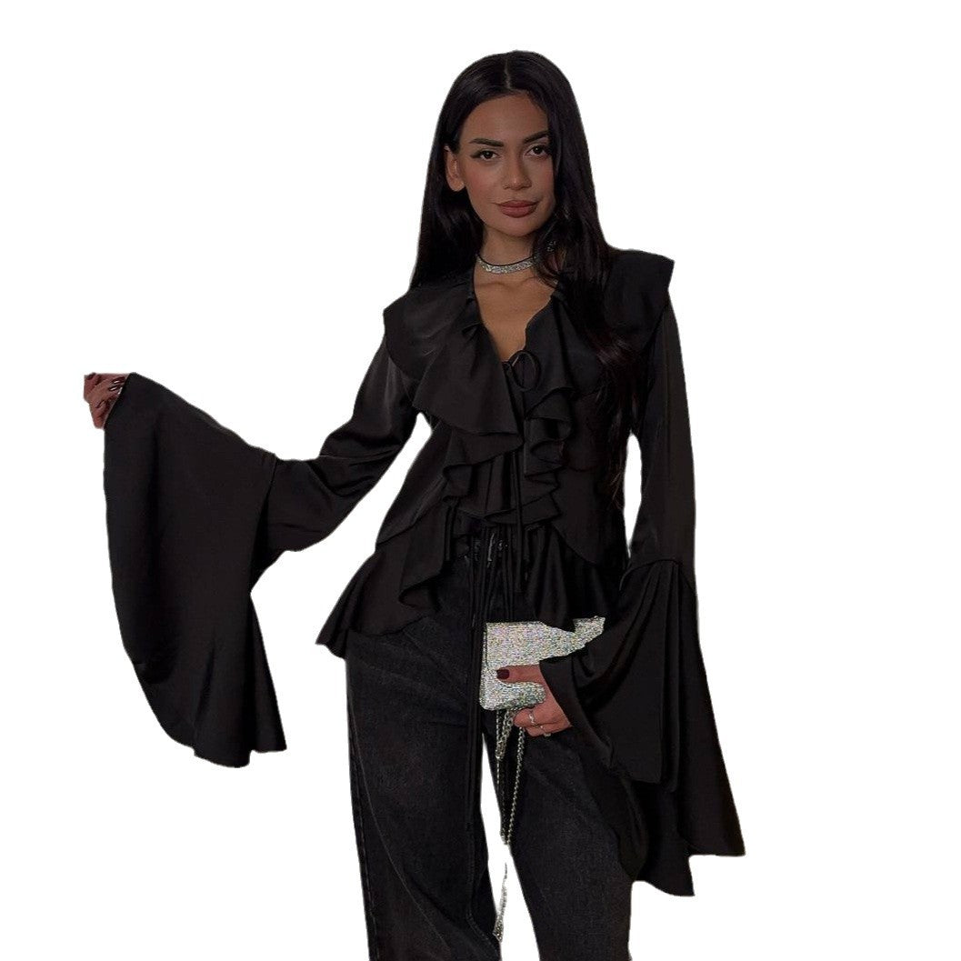 • Design: Auffällige Rüschendetails entlang des Kragens und der Vorderseite, die für einen trendigen Look sorgen.