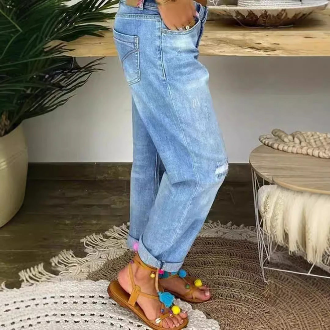 Damen Boyfriend Jeans mit Knopfverschluss und Distressed-Details Stalluxe
