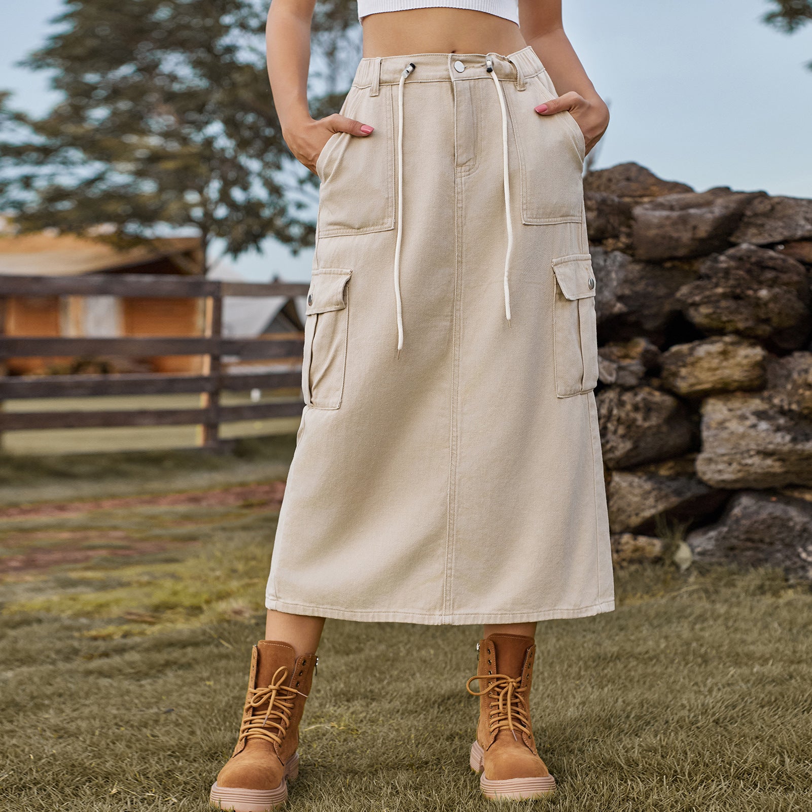 Ob für den Alltag, Freizeitaktivitäten oder entspannte Treffen mit Freunden, dieser Cargo-Midirock ist die perfekte Wahl für modebewusste Frauen, die Stil und Funktionalität schätzen.