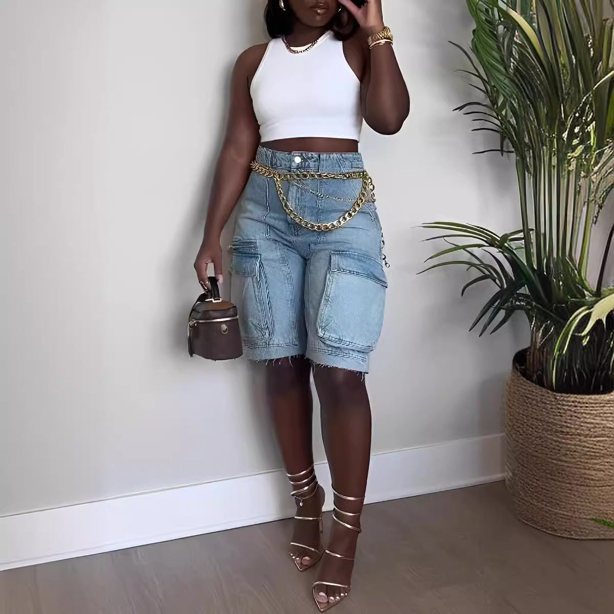 Entdecken Sie unsere Damen Cargo-Shorts im modernen Schnitt, die sowohl Stil als auch Funktionalität vereint. Diese Shorts sind ideal für modebewusste Frauen, die es lieben, bequem und gleichzeitig schick gekleidet zu sein.
