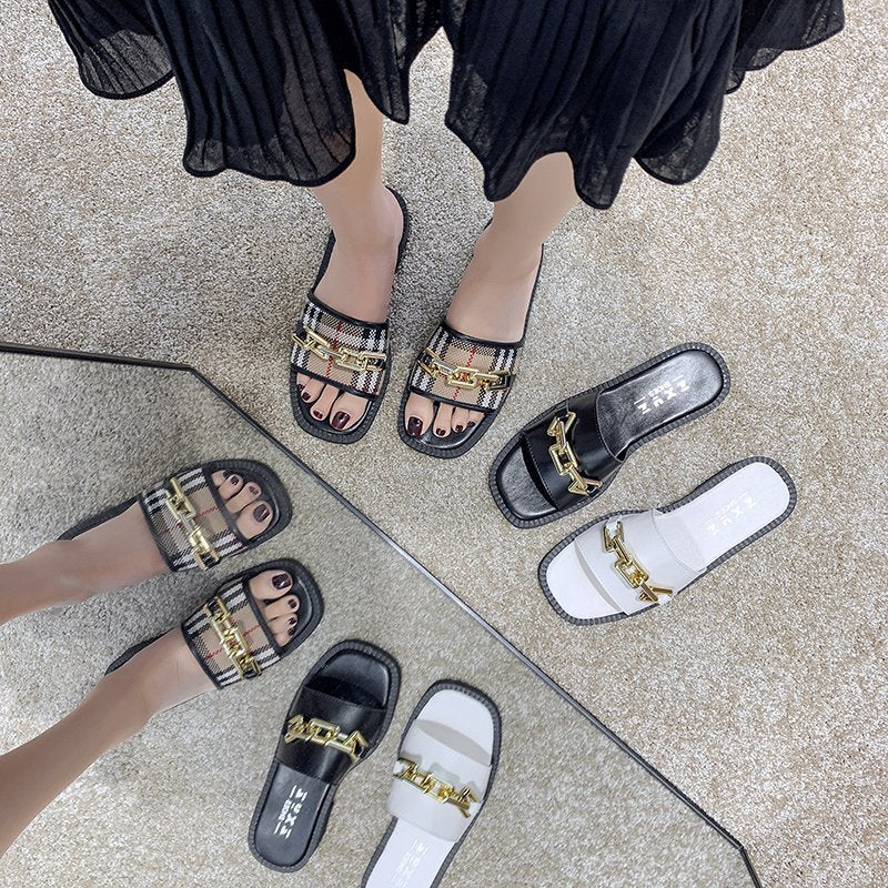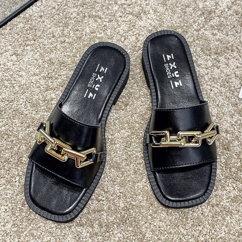 • Modisches Design: Mit einem einzigartigen Ketten-Accessoire kombinieren diese Schlappen Eleganz und Alltagstauglichkeit.